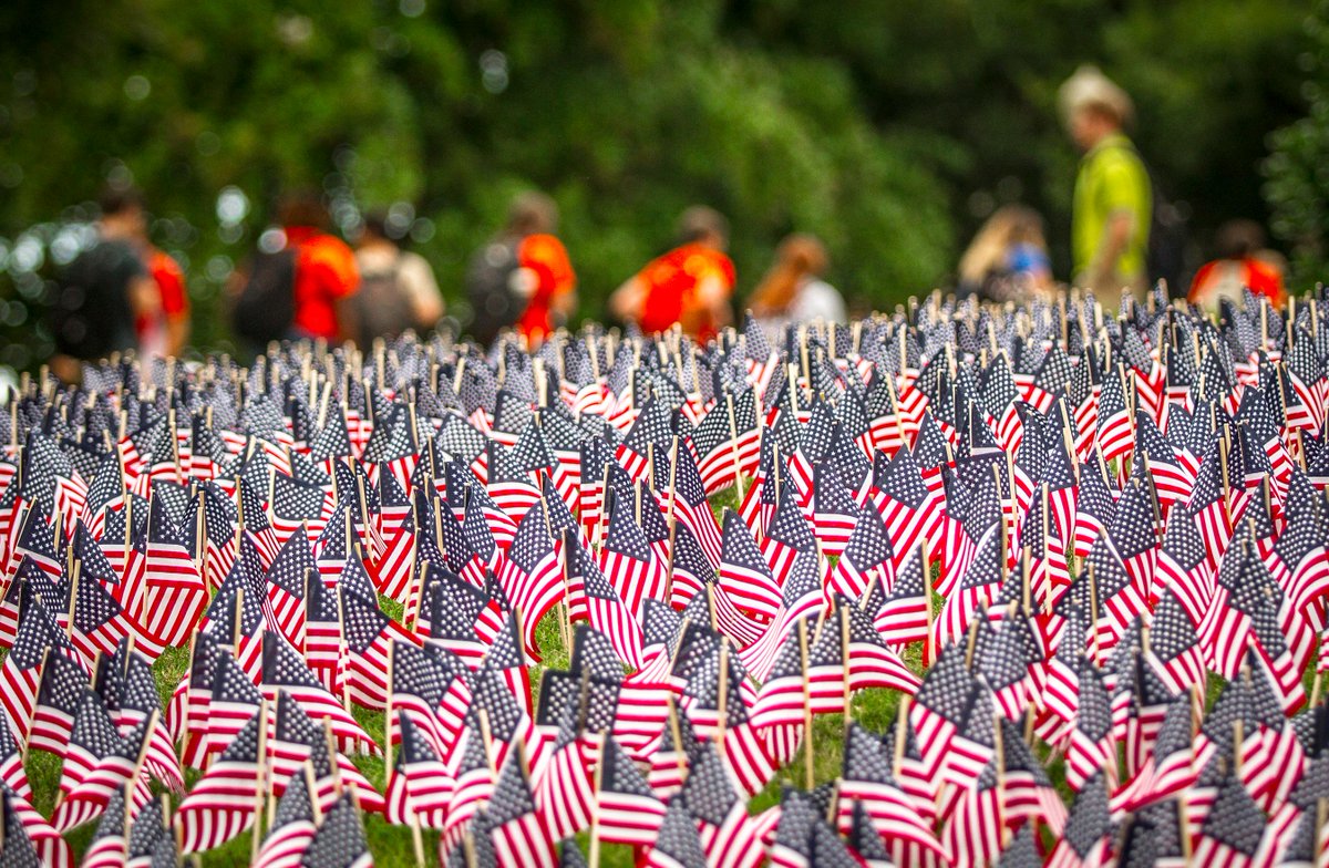 Clemson will not forget. 3,000+ flags cover Cox Plaza today to honor victims of 9-11 #NeverForget911 #September11