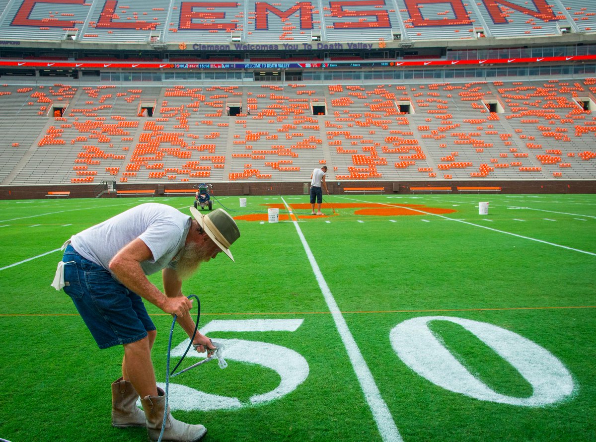 #DeathValley getting primed and shined for opening game against @WoffordTerriers. Who's ready for some FOOTBALL?!