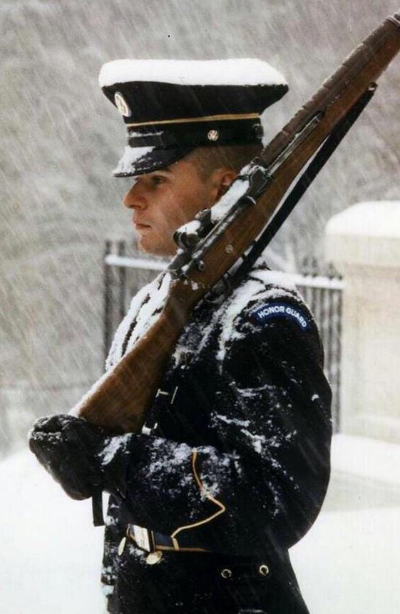 Rain, or shine, or snow, the Tomb of the Unknown Soldier is never left unguarded. Salute the troops. Merica.